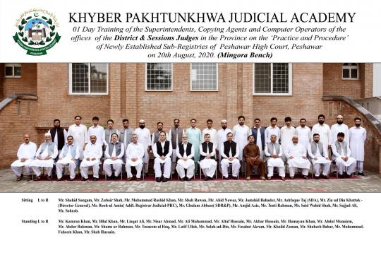 Group Photo of Training of the Superintendents, Copying Agents and Computer Operators of the Offices of the District & Sessions Judges in the Province on the ‘Practice and Procedure’ of Newly Established Sub-Registries of PHC, Mongora Bench, 20-8-2020