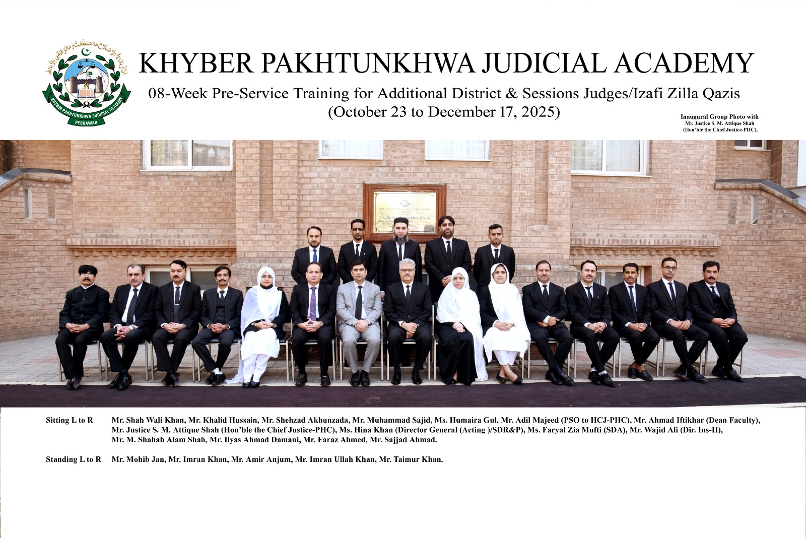 The Khyber Pakhtunkhwa Judicial Academy (KPJA) successfully concluded the 08 Weeks Pre-Service Training Programme for Additional District & Sessions Judges / Izafi Zilla Qazis, held from October 23 to December 17, 2025. The training was designed to enhance professional competence, judicial ethics, and practical skills of newly inducted judicial officers.