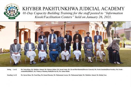 خیبر پختونخوا جوڈیشل اکیڈمی پشاور میں صوبے کے عدالتوں میں قائم دفترمعلومات کومزید فعال بنانے کےلئے اس کے عملے کو تربیت دینے کا سلسلہ جاری ہے ۔اس ضمن میں آج خیبرپختونخوا جوڈیشل اکیڈمی پشاور میں عدالت عالیہ ، اس کی سرکٹ بنچز اور ضلعی عدلیہ میں قائم دفتر معلومات میں تعینات عملے کی استعدادکار اور صلاحیتوں کو تقویت دینے کےلئے ایک روزہ تربیتی پروگرام کاانعقاد کیا گیا۔تربیتی پروگرام کی افتتاحی تقریب میں ڈائریکٹر جنرل جوڈیشل اکیڈمی ضیاء الدین خٹک، ڈین فیکلٹی فرح جمشید ، اسٹیشن ڈائریکٹر اظہرعلی ،سینئر ڈائریکٹر ریسرچ اینڈ پبلی کیشن فرح عطاء اللہ ، ڈائریکٹر انسٹرکشنز یاسرشبیر اورودیعہ مشتاق اور دیگر نے شرکت کی۔ ڈی جی جوڈیشل اکیڈمی نے اپنے خطاب میں تربیتی کورس کےا غراض و مقاصد بیان کرتے ہوئے کہا کہ نظام انصاف سے وابستہ جملہ افراد کا تربیت یافتہ ہونا ضروری امر ہے اور عدالتی عملے کےلئے تربیت اور ان کے استعداد کار میں اضافہ اتنا ہی ضروری ہے جتنا کہ جوڈیشل افسران کےلئے۔ ڈی جی اکیڈمی کا کہنا تھا کہ چیف جسٹس پشاور ہائی کورٹ کی خصوصی ہدایات کی روشنی میں اکیڈمی نے عدالتوں کے داخلی راستوں پر قائم دفترمعلومات کو فعال بنانے کے حوالے سے اس کے عملے کی تربیت اور استعداد کار بڑھانے کےلئے خصوصی کورس مرتب کیا گیا ہے جس کا زیادہ تر حصہ عملی پہلووں کا احاطہ کرتا ہے جس کےلئے اکیڈمی نے عدالت عالیہ کے آئی ٹی اور ایچ آر ونگ کے افسران کو بطور تربیت کار مدعو کیا ہے جو اپنے اپنے شعبوں کے ماہر ہیں۔ انہوں نے اس امید کا اظہار کیا کہ یہ تربیتی کورس شرکاء کے استعداد کار میں اضافے اور ان کے فرائض منصبی کی انجام دہی میں فائدہ مند ثابت ہوگا۔