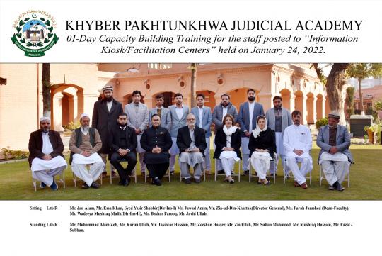 خیبر پختونخوا جوڈیشل اکیڈمی پشاور میں صوبے کے عدالتوں میں قائم دفترمعلومات کومزید فعال بنانے کےلئے اس کے عملے کو تربیت دینے کا سلسلہ جاری ہے ۔اس ضمن میں آج  خیبرپختونخوا جوڈیشل اکیڈمی پشاور میں عدالت عالیہ ، اس کی سرکٹ بنچز اور ضلعی عدلیہ میں قائم دفتر معلومات میں تعینات عملے کی استعدادکار اور صلاحیتوں کو تقویت دینے کےلئے ایک روزہ تربیتی پروگرام کاانعقاد کیا گیا۔تربیتی پروگرام کی افتتاحی تقریب میں ڈائریکٹر جنرل جوڈیشل اکیڈمی ضیاء الدین خٹک، ڈین فیکلٹی فرح جمشید ، اسٹیشن ڈائریکٹر اظہرعلی ،سینئر ڈائریکٹر ریسرچ  اینڈ پبلی کیشن فرح عطاء اللہ ، ڈائریکٹر انسٹرکشنز یاسرشبیر اورودیعہ مشتاق اور دیگر نے شرکت کی۔ ڈی جی جوڈیشل اکیڈمی نے اپنے خطاب میں تربیتی کورس کےا غراض و مقاصد بیان کرتے ہوئے کہا کہ نظام انصاف سے وابستہ جملہ افراد کا تربیت یافتہ ہونا ضروری امر ہے اور عدالتی عملے کےلئے تربیت اور ان کے استعداد کار میں اضافہ اتنا ہی ضروری ہے جتنا کہ جوڈیشل افسران کےلئے۔ ڈی جی اکیڈمی کا کہنا تھا کہ چیف جسٹس پشاور ہائی کورٹ کی خصوصی ہدایات کی روشنی میں اکیڈمی نے عدالتوں کے داخلی راستوں پر قائم دفترمعلومات کو فعال بنانے کے حوالے سے اس کے عملے کی تربیت اور استعداد کار بڑھانے کےلئے خصوصی کورس مرتب کیا گیا ہے جس کا زیادہ تر حصہ عملی پہلووں کا احاطہ کرتا ہے جس کےلئے اکیڈمی نے عدالت عالیہ کے آئی ٹی اور ایچ آر ونگ کے افسران کو بطور تربیت کار مدعو کیا ہے جو اپنے اپنے شعبوں کے ماہر ہیں۔ انہوں نے اس امید کا اظہار کیا کہ یہ تربیتی کورس شرکاء کے استعداد کار میں اضافے اور ان کے فرائض منصبی کی انجام دہی میں فائدہ مند ثابت ہوگا۔