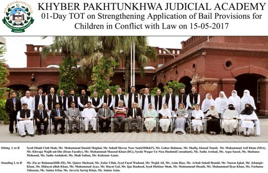 A one Day Training of Trainers (TOT) on Strengthening Application of Bail Provisions for Children in Conflict with law for Judicial officer at KP Judicial Academy held on 15th May 2017. More than thirty Judicial Officers across the Province were participated. The objective of the Training curriculum was to import knowledge and skills and to support the implementation of a rights-based approach among the Judicial officers tasked to handle the case of juveniles in conflict with law.