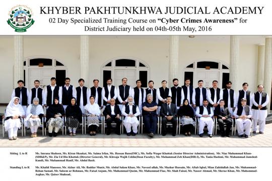 The need for sensitizing and apprising the judges of the district judiciary on the subject of cyber crimes, the Judicial Academy arranged two day Specialized Course on cyber crimes for Civil Judge/Judicial Magistrates.  The specialized course was focused on Types of Cyber Crimes, The Importance of Understanding in Today’s Digital World, An Overview Of Existing Legislation On Cyber Crime Around The Globe – International, Cyber Laws & Cyber Crimes in Pakistan, and Privacy Issues. A total of 25 Civil  Judges from various districts of Khyber Pakhtunkhwa participated. On the occasion of the concluding ceremony, Mr. Zia ud Din Khattak awarded certificates to the participants.