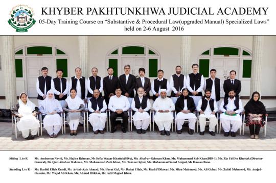 The Academy organized a specialized 05-Day (2-6 August, 2016)Trainings on  Substantive and Procedural Law with upgraded Manuals. This specialized training includes subjects viz., Illegal Dispossession Act, Dishonor of cheque u/s 489-F Pakistan Penal Code&  Justice of Peace (Section 22-A of Criminal Procedure Code). 18 Additional District and Session Judges for various districts of the province participated in the training.