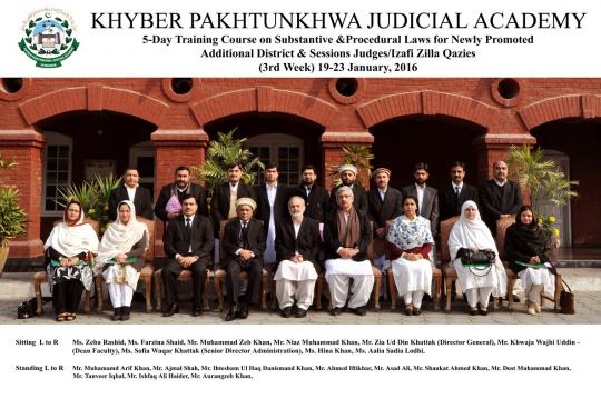 05-Days Training course on Substantive & Procedural Laws for Newly Promoted Additional District & Sessions Judges, Izafi Zilla Qazies (3rd Week) (from 19th to 23rd January, 2016) concluded at KP Judicial Academy.