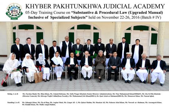 . The training commenced on 22nd November, 2016 and continued till 26th November. The focus of the training was on Illegal Dispossession Act, Dishonoring of cheque u/s 489-F Pakistan Penal Code & Justice of Peace (Section 22-A of Criminal Procedure Code). The recent judgments of the August Supreme Court of Pakistan on the limits and parameters of illegal dispossession were specially focused. A comparison between previous judgments of the apex court on the subject and its recent judgments was made in a participatory way. The training was formally concluded by the Director General KPJA, Mr. Zia uddin Khattak. In his closing remarks, the worthy DGlauded the behavior of the participants during the whole session. He saw off the participants with thanks and a piece of advice to consistently work hard to serve the cause of justice.