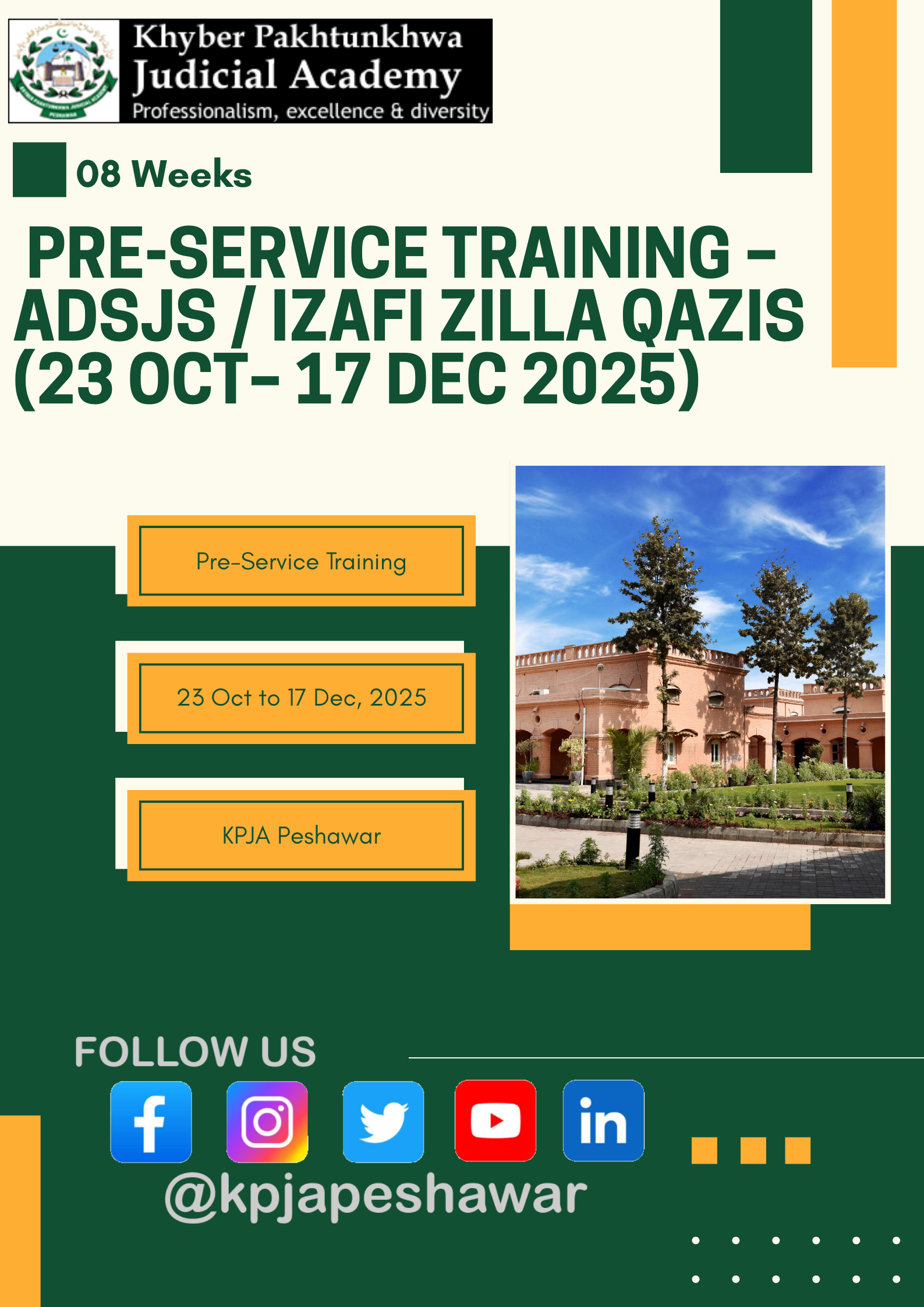 08 WEEKS PRE-SERVICE TRAINING FOR ADDITIONAL DISTRICT & SESSIONS JUDGES/IZAFI ZILLA QAZIS (OCT 23rd TO DEC 17th, 2025)