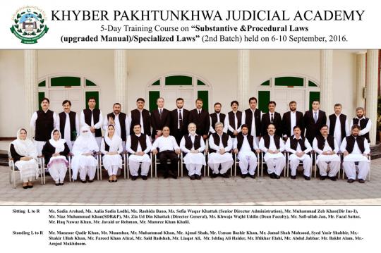 The Academy conducted the specialized 05-Day Training on “Substantive and Procedural Laws” for newly promoted Additional District and Session Judges/Izafi Zilla Qazis across the province. The training commenced on 6th September, 2016 that continued till 10th September. The focus of the training was on Illegal Dispossession Act, Dishonor of cheque u/s 489-F Pakistan Penal Code & Justice of Peace (Section 22-A of Criminal Procedure Code). The recent judgments of the august Supreme Court of Pakistan on the limits and parameters of illegal dispossession were specially focused. A comparison between previous judgments of the apex court on the subject and its recent judgments was made in a participatory way. The training was formally concluded by the Director General KPJA, Mr. Zia uddin Khattak. In his closing remarks, the worthy DGlauded the behavior of the participants during the whole session. He saw off the participants with thanks and a piece of advice.