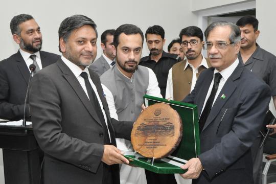 Hon'ble the Chief Justice, Supreme Court of Pakistan Mr. Justice Mian Saqib Nisar, visited KP Judicial Academy today. Justice Umar  Ata Bindial, Justice Supreme Court and Mr. Arbab Muhammad Arif, Registrar SC accompanied him. Justice Yahya Afridi, Chairman, Justice Waqar Ahmad Sethi Vice Chairman and Mr. Muhammad Salim Khan, Registrar, Peshawar High Court were also present on the occasion.  The hon’ble Chief Justice visited various sections of the Academy including Radio Meezan.