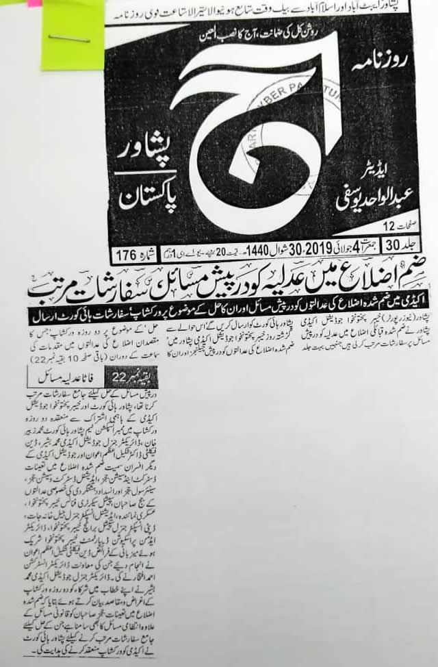 DAILY AAJ: 02-DAY WORKSHOP ON WORKING OF NMDs COURTS: CHALLENGES AND SOLUTIONS 2-3 July, 2019