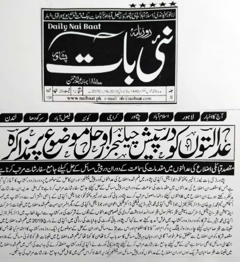 Daily Nai Bat : 02-DAY WORKSHOP ON WORKING OF NMDs COURTS: CHALLENGES AND SOLUTIONS 2-3 July, 2019