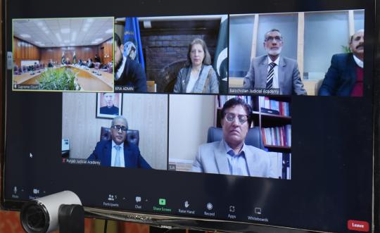 Meeting was chaired by Hon'ble Mr. Justice Ijaz ul Ahsan, Judge, Supreme Court of Pakistan / Chairman of ADR Committee. It was attended through zoom by all Directors General of the Judicial Academies. Secretary of the Committee, Ms. Riffat Inam Butt convened the meeting.