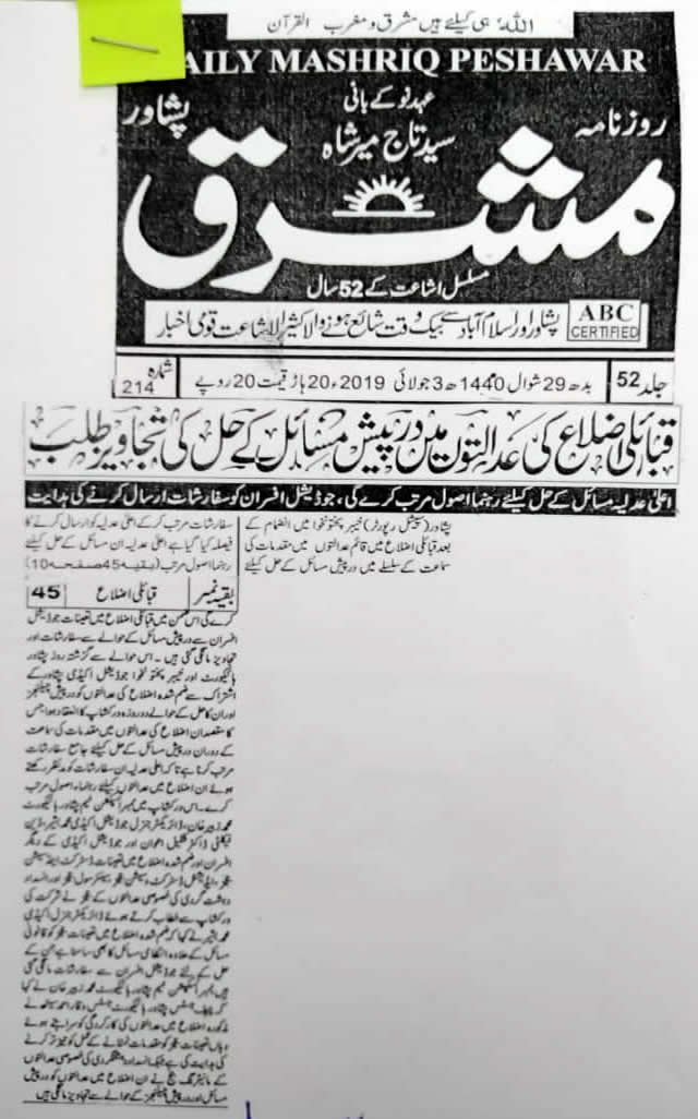 DIALY MASHRIQ: 02-DAY WORKSHOP ON WORKING OF NMDs COURTS: CHALLENGES AND SOLUTIONS 2-3 July, 2019