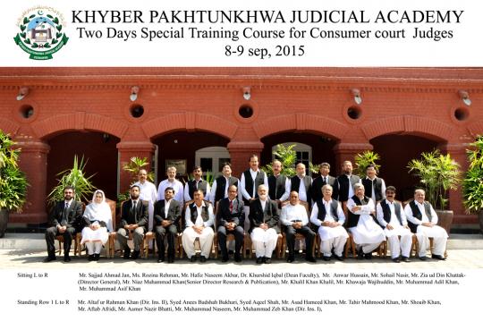 A special training of two days, the first ever on Consumer Protection Laws, concluded today, Wednesday Sep 09, 2015.  A batch of 16 District & Sessions Judges, recently assigned with the special duties of Consumer Courts’ Judges, are participating in this course. The training was formally concluded by the Director General KPJA, Mr. Ziauddin Khattak. In his closing remarks, the worthy DG expressed emense pleassure on the completion of the course and encouraged the participants to activly practice their enhanced learning in the field.