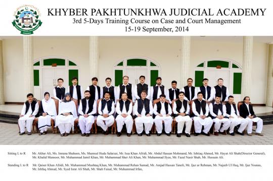 The third 5-day training course on Court and Case Management of Judges concluded today ( 15- 19 Sep, 2014). As many as 23 Judges from across the province participated in the course. Due representation was given to prosecutors from Malakand as the course is part of the UNDP’s Strengthening the Rule of Law in Malakand (SRLM) project. In the conclusion ceremony, the participants shared their feedback with the Academy through their representatives. The participants also expressed their thanks for their nomination.