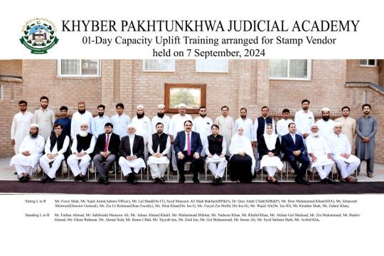 The Khyber Pakhtunkhwa Judicial Academy organized one-day training under Justice Sector Reforms: (Capacity Uplift of Paralegals). 24 Stamp Vendors from District Charsadda, Peshawar and Mardan participated in the training activity.