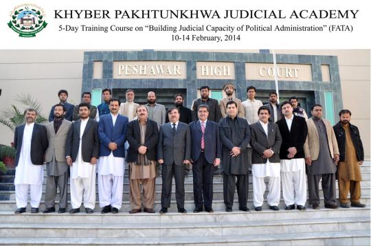 First 05-days training course for the political administration of FATA (Federally Administrated Tribal Areas) concluded today at KP Judicial Academy Peshawar. The focus of the course was the Legal Framework, Sentencing guidelines, Pleading & issues, Legal & Communication Skills in Judgment Writing, Key assorted proceedings: Superdari, charge, Challan, Human Rights with focus on Fair Trial, Process and maintenance of diary, Judicial record with focus on preparation/compilation, Execution of Decree, The human face of collective responsibility and Mock Court Trial. Assistant Political Agents, Political Tehsildars and Naib Political Tehsildar from Malakand Agency, Khyber Agency, Orakzai Agency, North Waziristan Agency, South Waziristan Agency, Bajaur Agency, Kurram Agency, FR Peshawar, Bannu, Kohat and D.I Khan participated in the course.