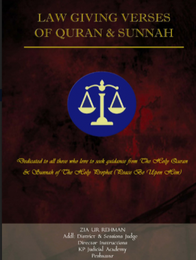 The legal fraternity has always been in need of a refrencer | a’ handbook for tracing law giving provisions of Islam. However, basic knowledge of the Islamic Jurisprudence and sources of the law is a must for such an endeavor. Having this perspective in mind the compilation in hand was aimed at. The Holy Quran and the Sunnah of the Holy Prophet Mohammad (Peace Be Upon Him) are the only two agreed upon sources of law by all the famous and renowned schools of thoughts. There are almost five hundred (500) verses of the Holy Quran which provide laws and legal principles and only almost two hundred and thirty (230) verses amongst them are relevant to enforceable rights and administration of justice. These verses have been categorized in this compilation under different heads, Civil, Criminal, Family, Adjudication etc by further classifying them into sub-heads of the existing enactments.