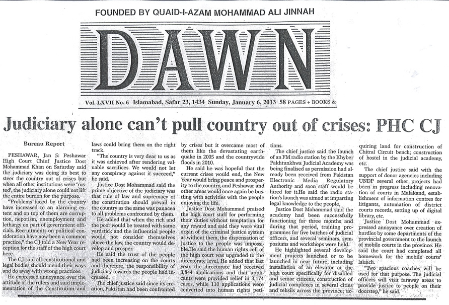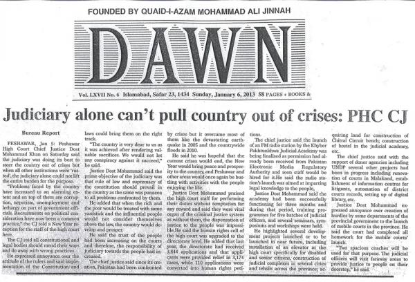 News Clipping in Daily Dawn, Islamabad on Jan 6, 2013