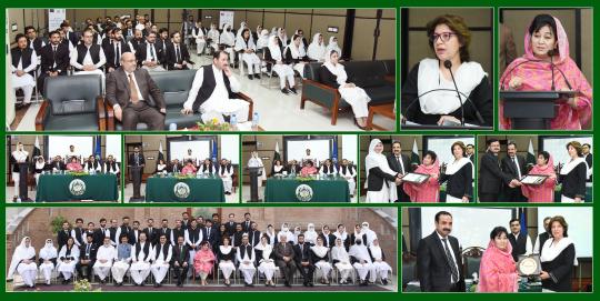 Hon’ble Justice Musarrat Hialali, Judge Peshawar High Court was Chief Guest of the occasion. She congratulated the participants on successful completion of Pre-Service training and emphasized at achieving excellence in their field.She reiterated that judges should have a polite and kind attitude towards litigant public.