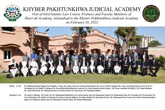 Trainees of 63rd Shariah (Islamic Law) Course organized by Islamic International Islamic University Islamabad (IIUI), Shariah Academy, visited KPJA on February 10, 2022. The Director General Khyber Pakhtunkhwa Judicial Academy welcomed the participants and briefed them on activities of Academy.