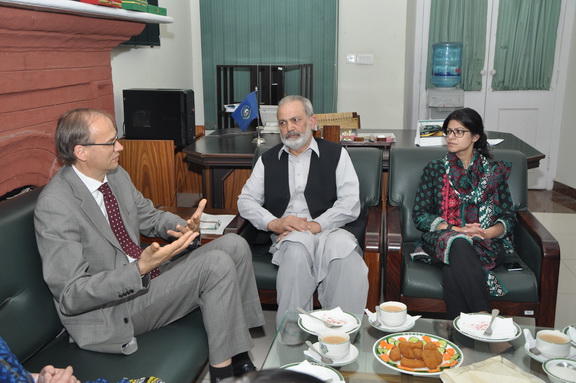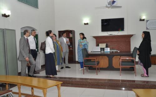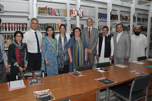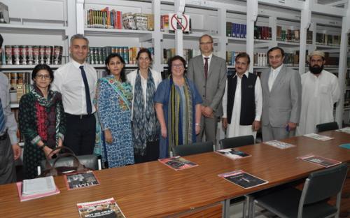 A delegation from the Swiss Development Corporation (SDC) along with UNDP visited the Academy on 28th April. The delegation visited various sections of the Academy including, the Research Wing, Library, Radio Meezan studios, Mediation Center. A briefing was also given to the team about the progress of KP Judicial Academy. The delegation appreciated the academic achievements and research studies conducted by the Academy and also expressed immense pleasure on the progress made by KPJA in very short span of time.
