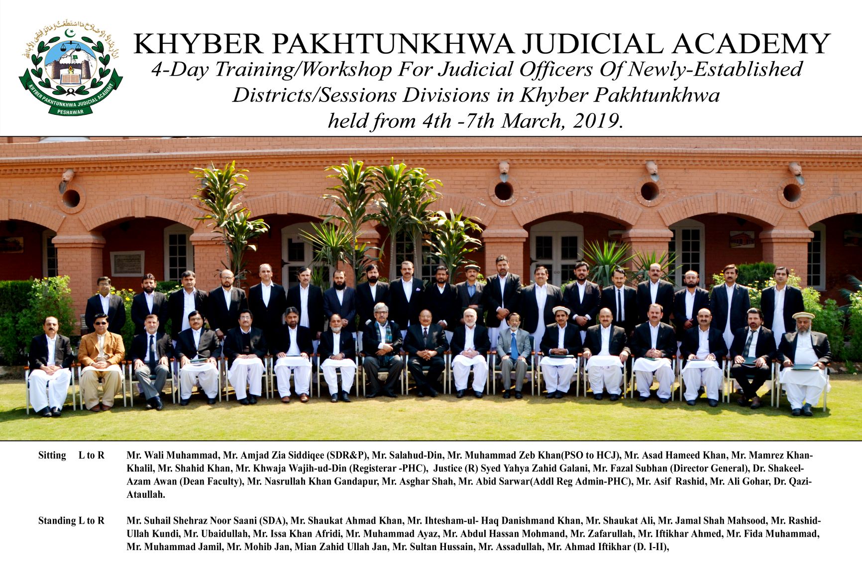 4-DAYS TRAINING/WORKSHOP FOR JUDICIAL OFFICERS OF NEWLY-ESTABLISHED DISTRICTS/SESSIONS DIVISIONS IN KHYBER PAKHTUNKHWA