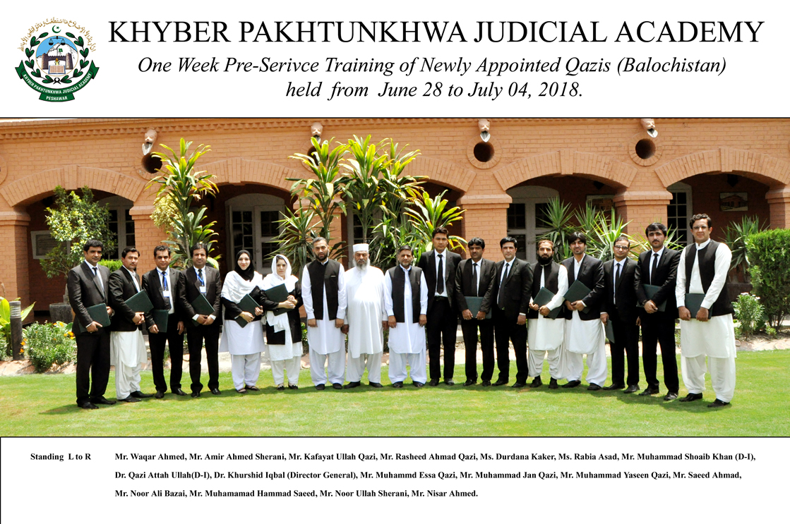 PRE-SERVICE TRAINING FOR NEWLY APPOINTED QAZIS OF BALOCHISTAN (Complementary Segment at KP Judicial Academy) (28 June – 4 July, 2018)