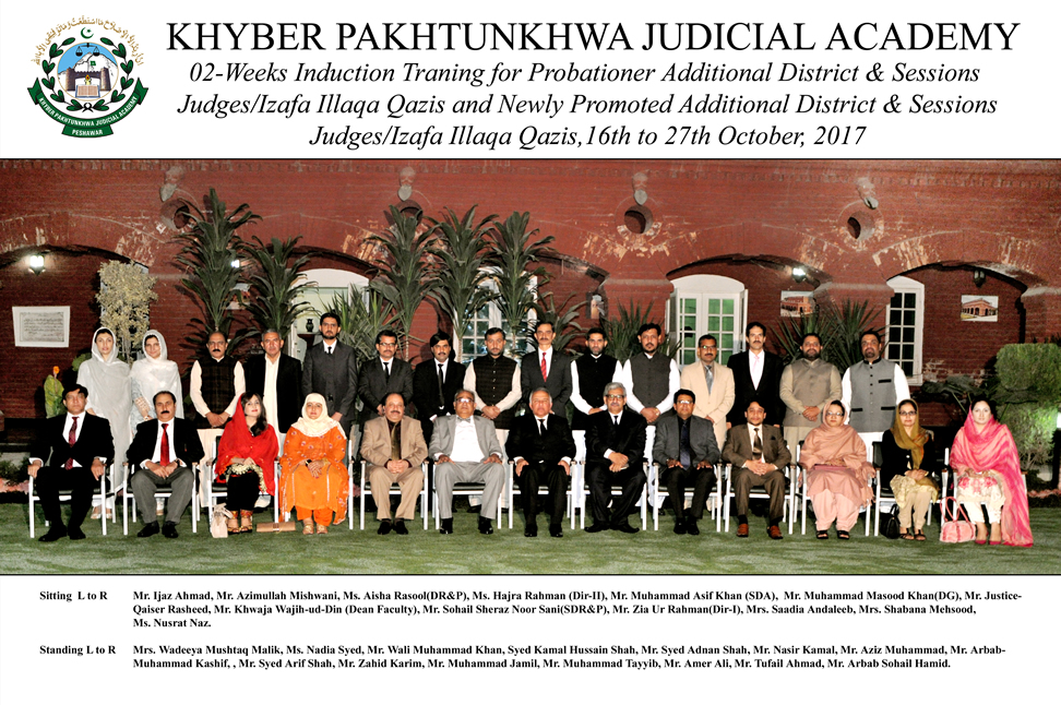 Group Photo: 02-Weeks Induction Training for Probationer Additional District & Sessions Judges/Izafa Illaqa Qazis and Newly Promoted Additional District & Sessions Judges/Izafa Illaqa Qazis,16th to 27th October, 2017