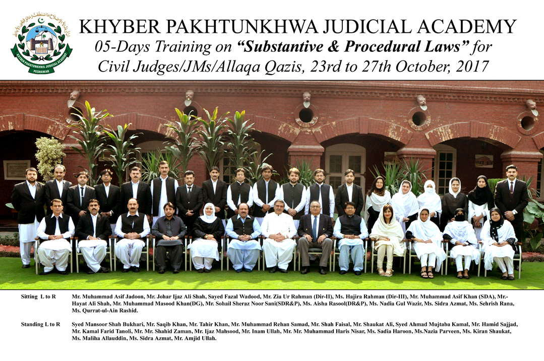 05-Day Training on Substantive & Procedural Laws for Civil Judges/ Judicial Magistrates / Illaqa Qazies, 23rd to 27th October, 2017 05-Day Training on Substantive & Procedural Laws for Civil Judges/ Judicial Magistrates / Illaqa Qazies, 23rd to 27th October, 2017