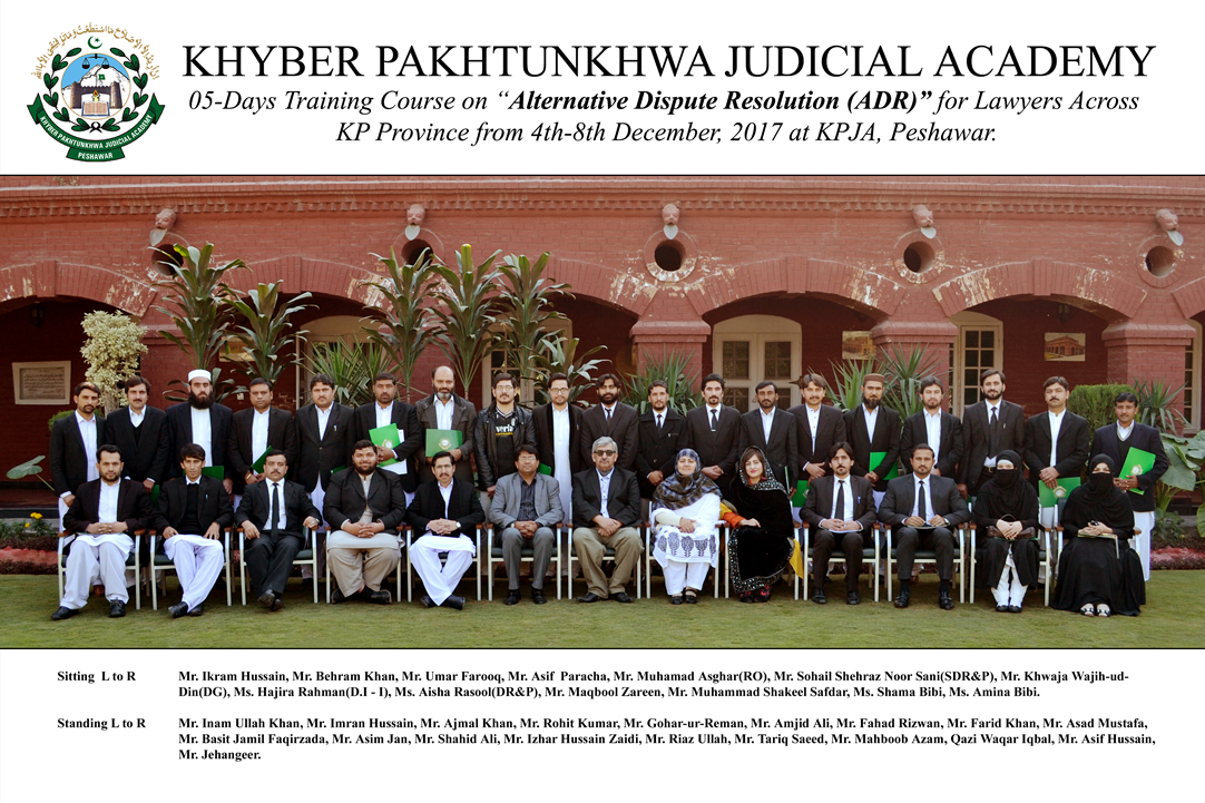 Group photo 05-Days Training Course on “Alternative Dispute Resolution (ADR)” for Lawyers Across KP Province from 4th-8th December, 2017 at KPJA, Peshawar