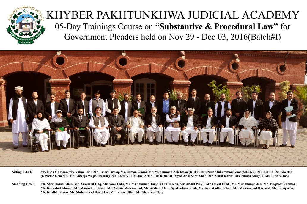 05-Day Training Course on “Substantive & Procedural Law for Government Pleaders held on Nov 29 - Dec 03, 2016(Batch#I) with support of UNDP