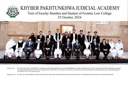 In a bid to foster academic engagement, a delegation of students from Frontier Law College, Peshawar, visited the Khyber Pakhtunkhwa Judicial Academy on October 25, 2024. The delegation was led by Mr. Akhtar Ali Khan, the college's founder and Director, and included Justice (retired) Syed Yahya Zahid Gillani, Principal of FLC, and other faculty members.