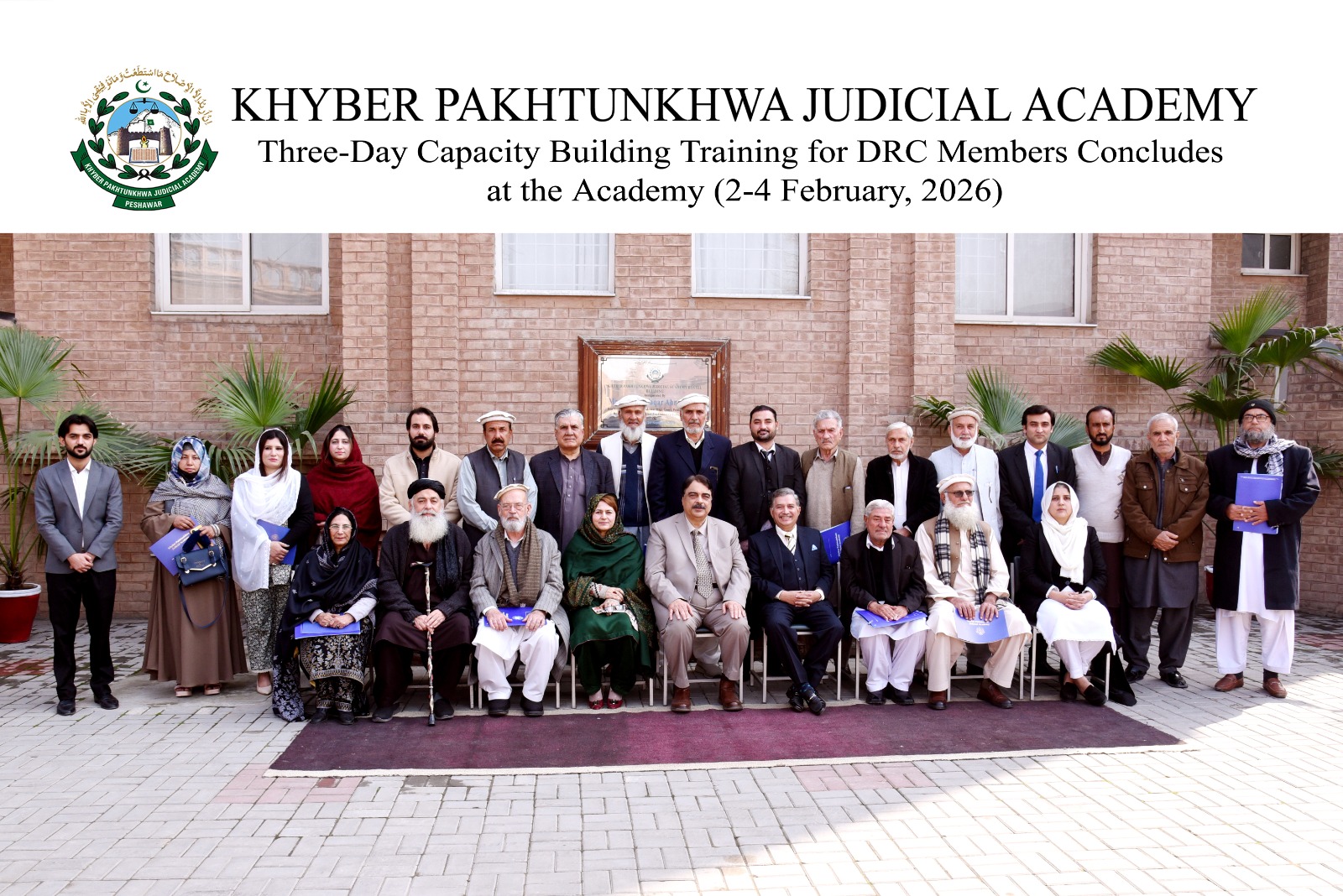 A three-day capacity building training program titled “Capacity Building of Dispute Resolution Council (DRC) Members on Mediation Techniques and Standardized Record Keeping” was successfully conducted at the Academy on 2nd to 4th February 2026. The training was organized with the support of KP Police and UNDP to enhance the professional capacity of DRC members in alternative dispute resolution and community justice.