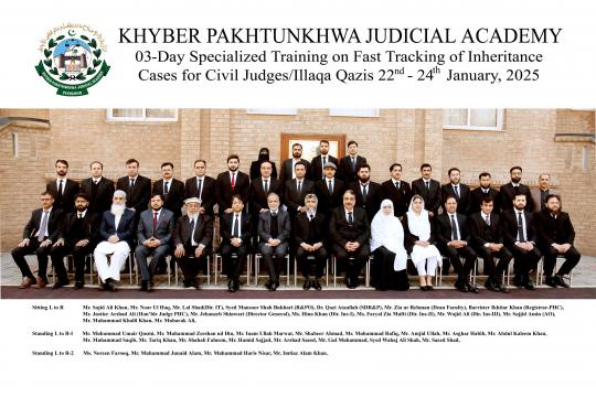 The Khyber Pakhtunkhwa Judicial Academy has successfully completed three-day training for the first batch of Civil Judges/Illaqa Qazis on “fast tracking of inheritance cases”. This initiative, spearheaded by Hon’ble the Chief Justice Peshawar High Court, Mr. Justice Ishtiaq Ibrahim, aims to expedite the resolution of inheritance cases, a significant backlog in the province.